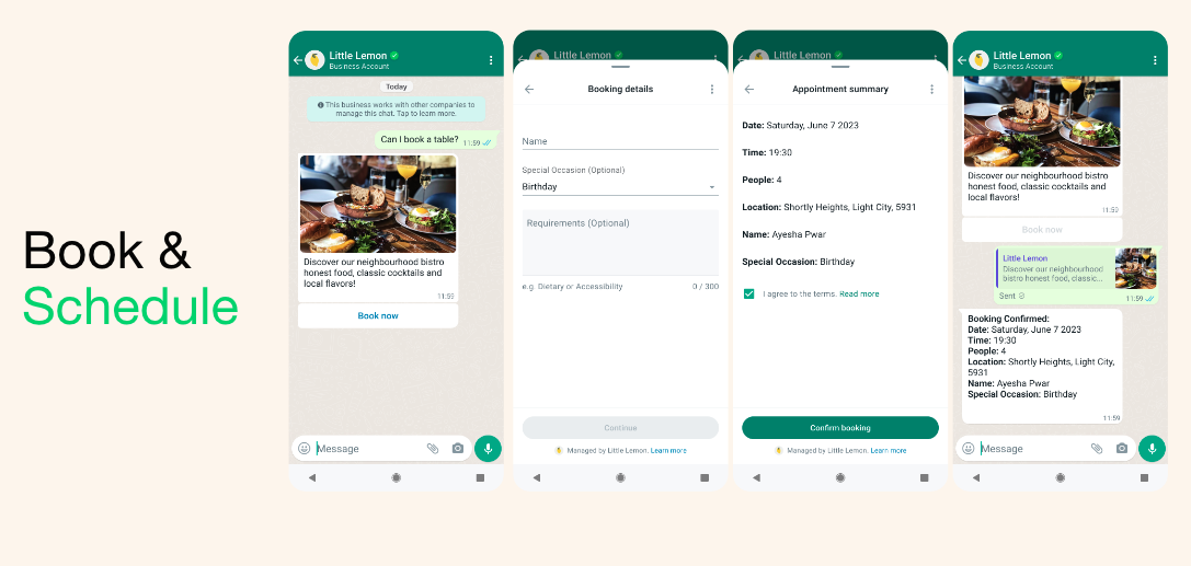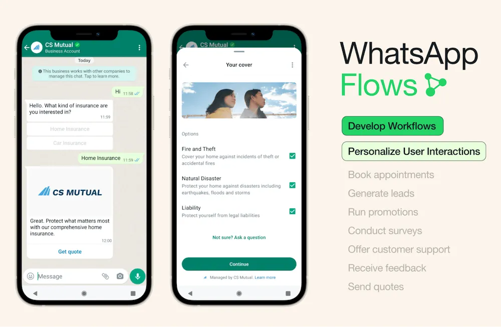 WhatsApp Flows bridges the gap between static text exchanges and interactive experiences. By leveraging the secure data channel to connect to endpoints, it allows for real-time data exchange, enhancing the flow of information between businesses and users.